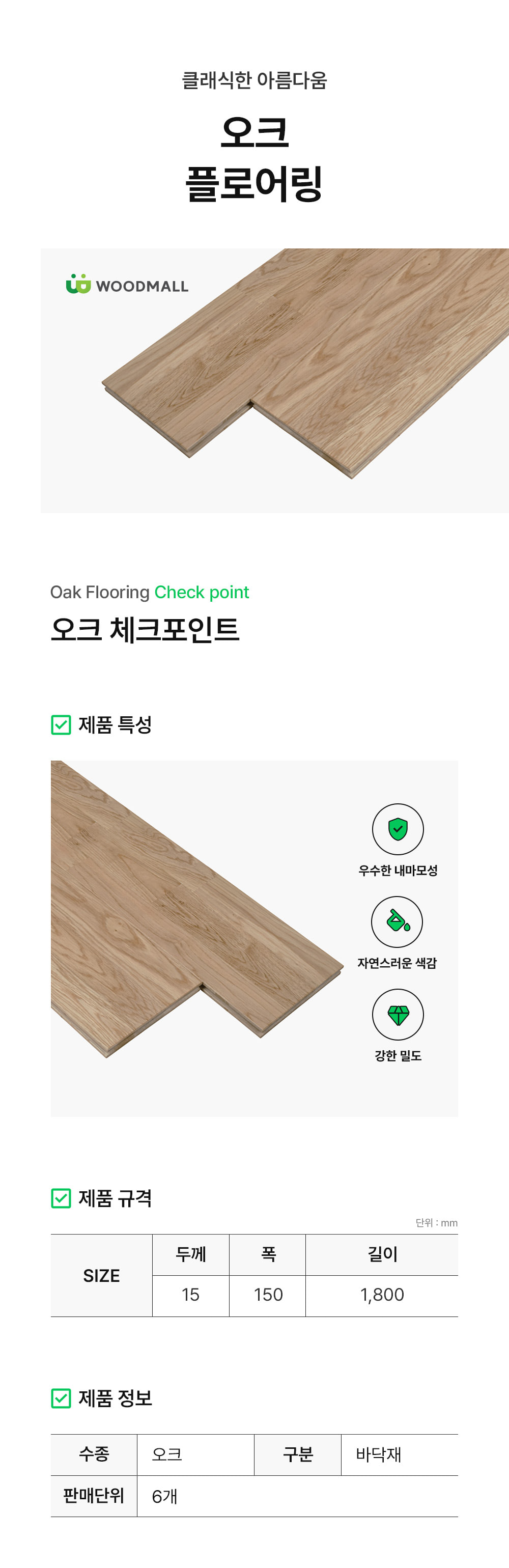 오크 플로어링 (6개묶음) 15x150x1800