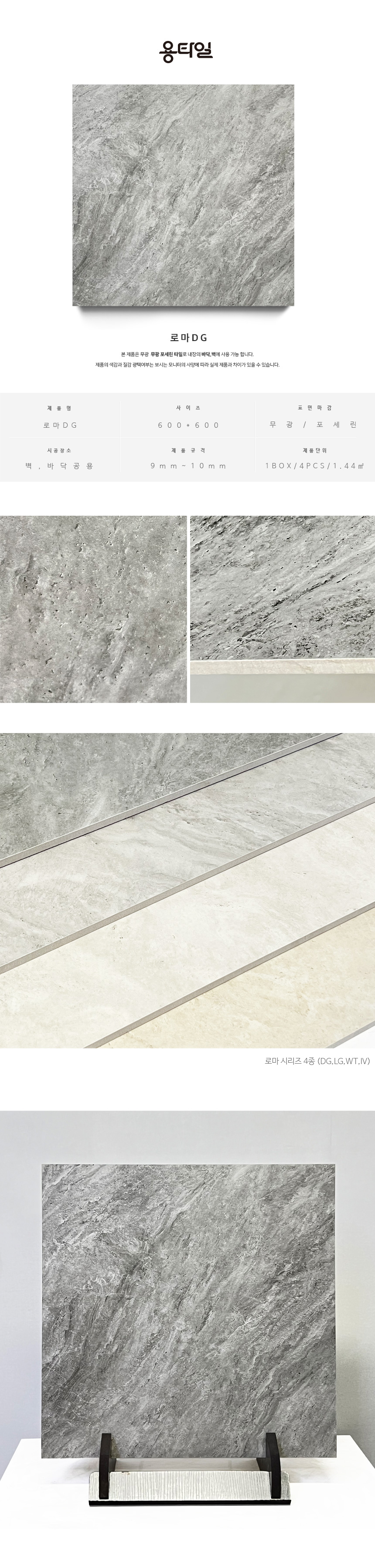 용타일 / 로마DG / 무광 / 600X600 / 포세린타일 / 1Box 4pcs 1.44㎡
