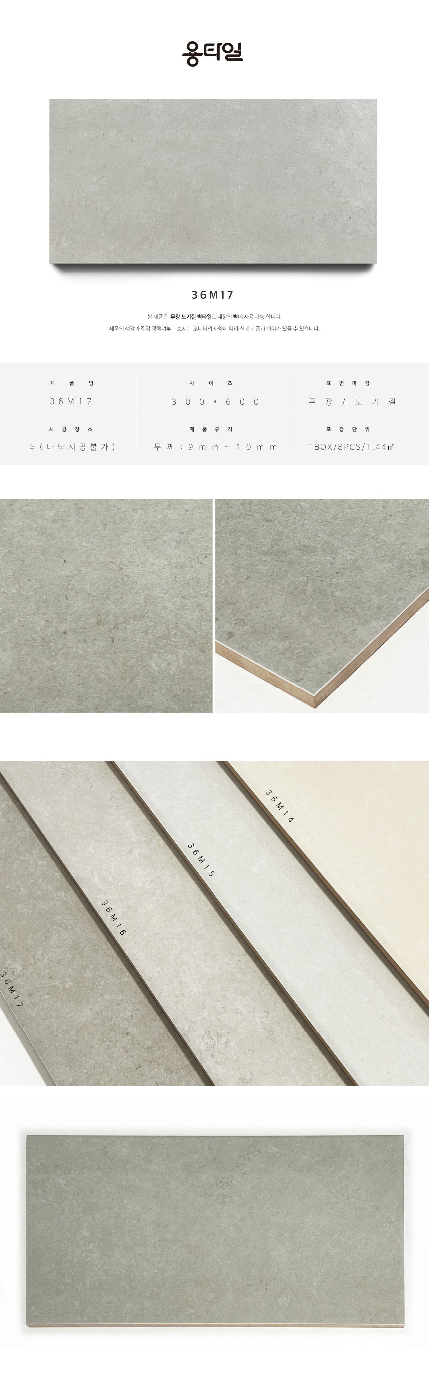 용타일 / 36M17 / 무광 / 300X600 / 벽타일 / 1Box 8pcs 1.44㎡