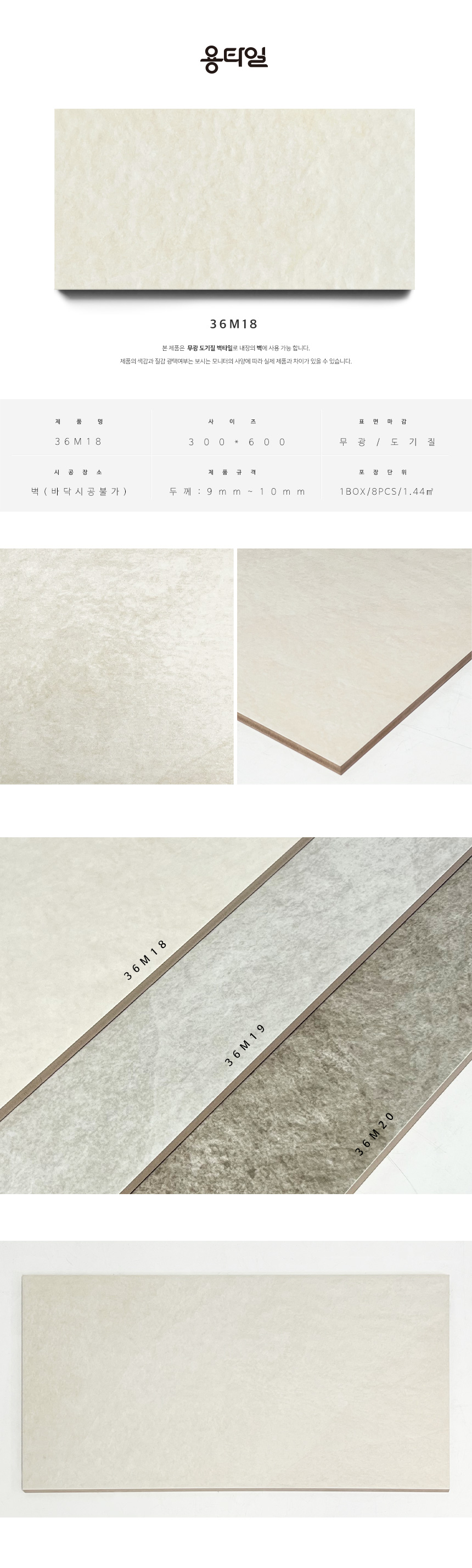 용타일 / 36M18 / 무광 / 300X600 / 벽타일 / 1Box 8pcs 1.44㎡