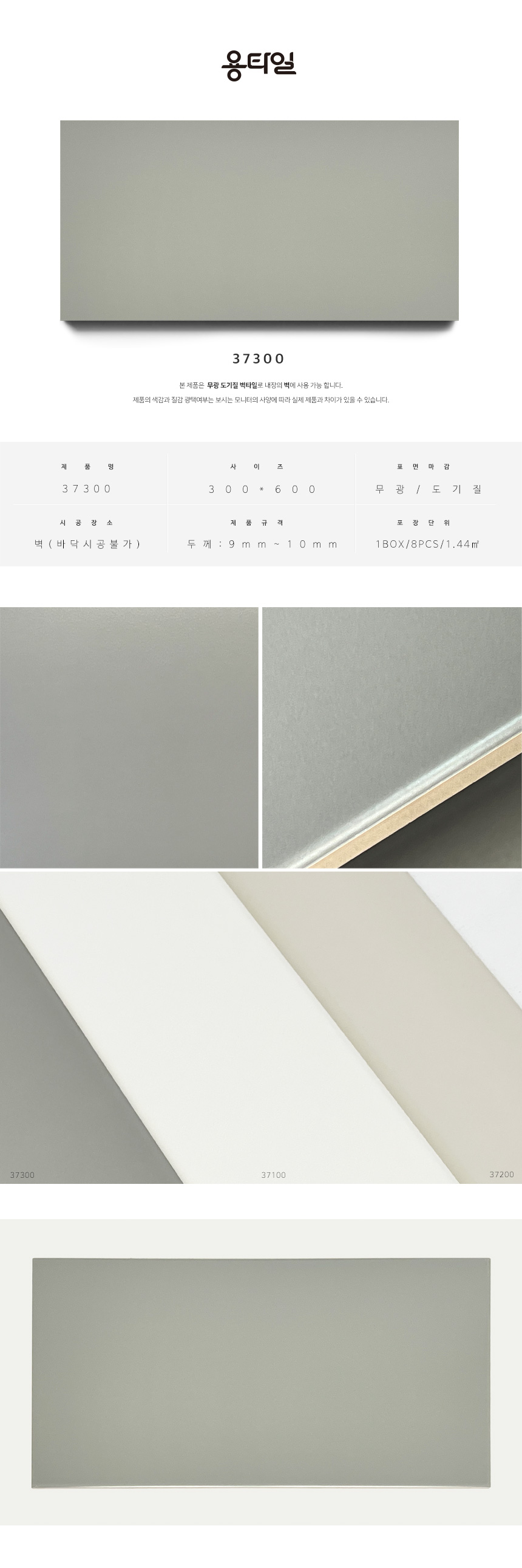 용타일 / 37300 / 무광 / 300X600 / 벽타일 / 1Box 8pcs 1.44㎡