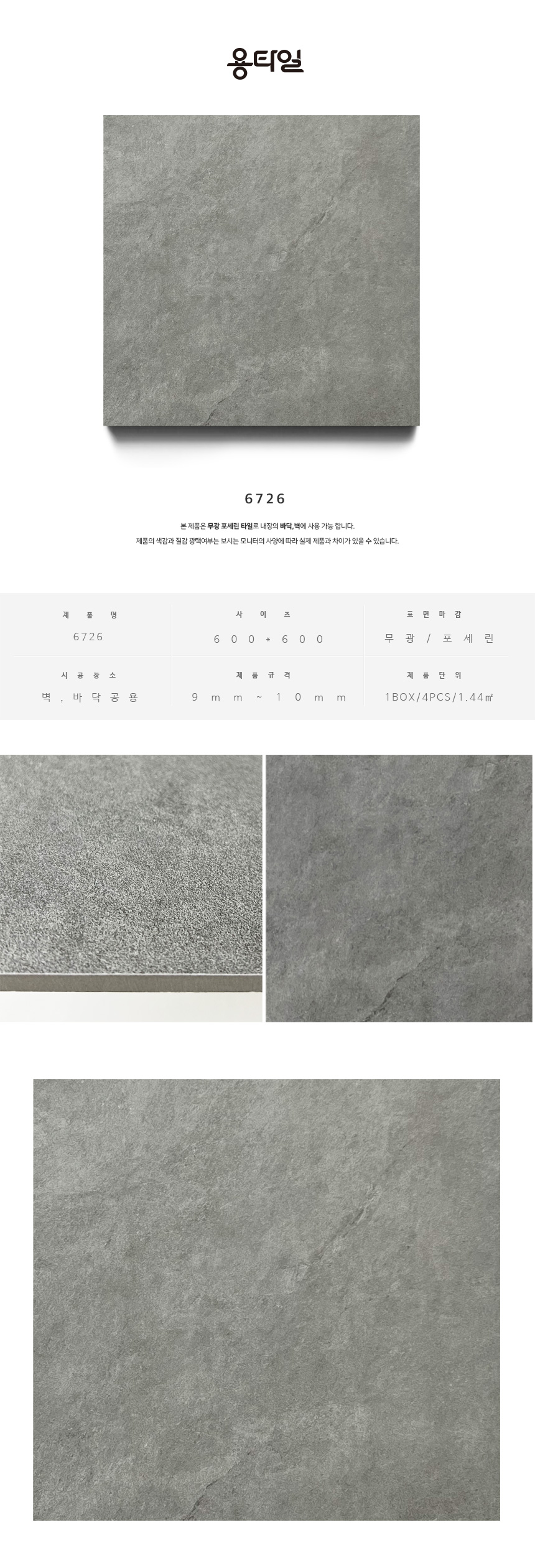용타일 / 6726 / 무광 / 600X600 / 포세린타일 / 1Box 4pcs 1.44㎡