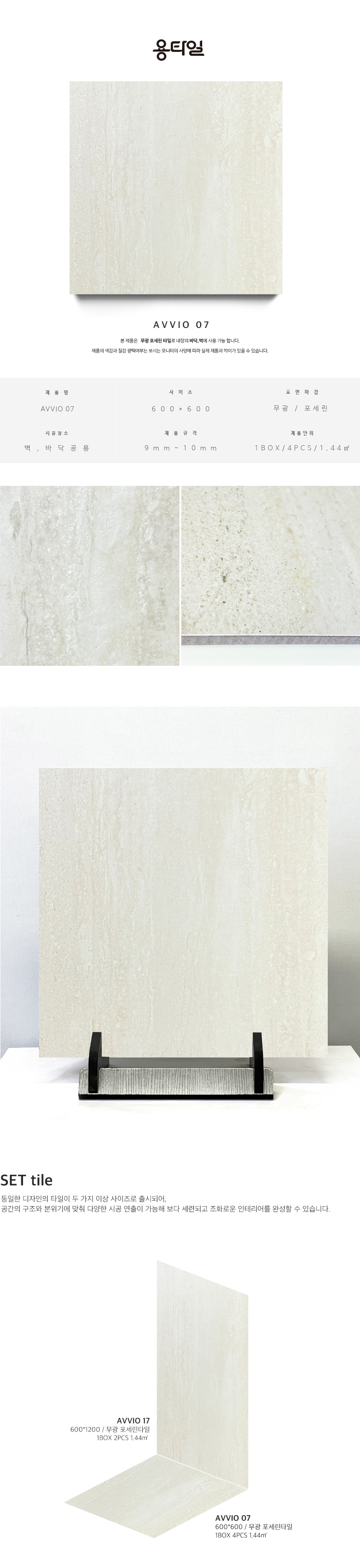 용타일 / AVVIO 07 / 무광 / 600X600 / 포세린타일,세트타일 / 1Box 4pcs 1.44㎡