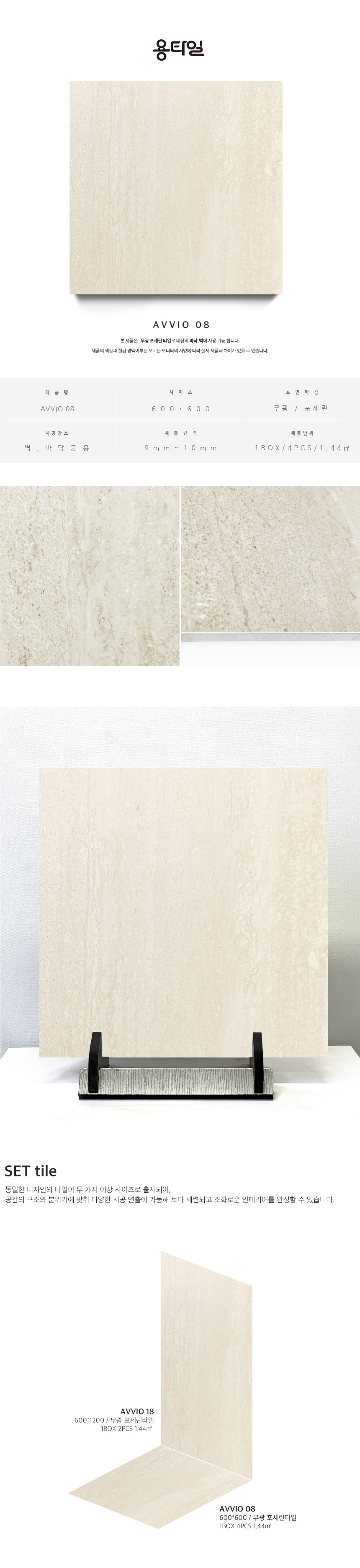 용타일 / AVVIO 08 / 무광 / 600X600 / 포세린타일,세트타일 / 1Box 4pcs 1.44㎡
