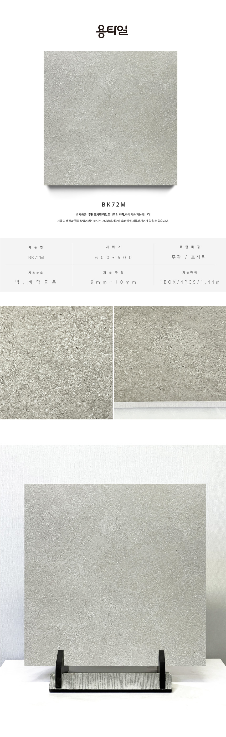 용타일 / BK72M / 무광 / 600X600 / 포세린타일 / 1Box 4pcs 1.44㎡