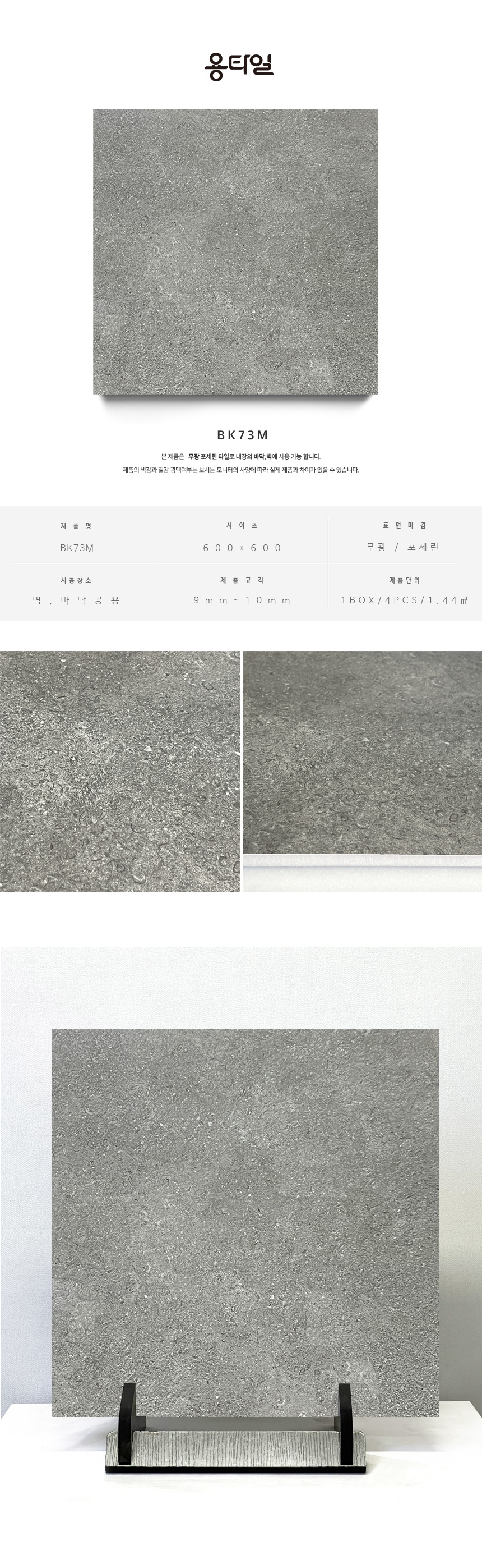 용타일 / BK73M / 무광 / 600X600 / 포세린타일 / 1Box 4pcs 1.44㎡