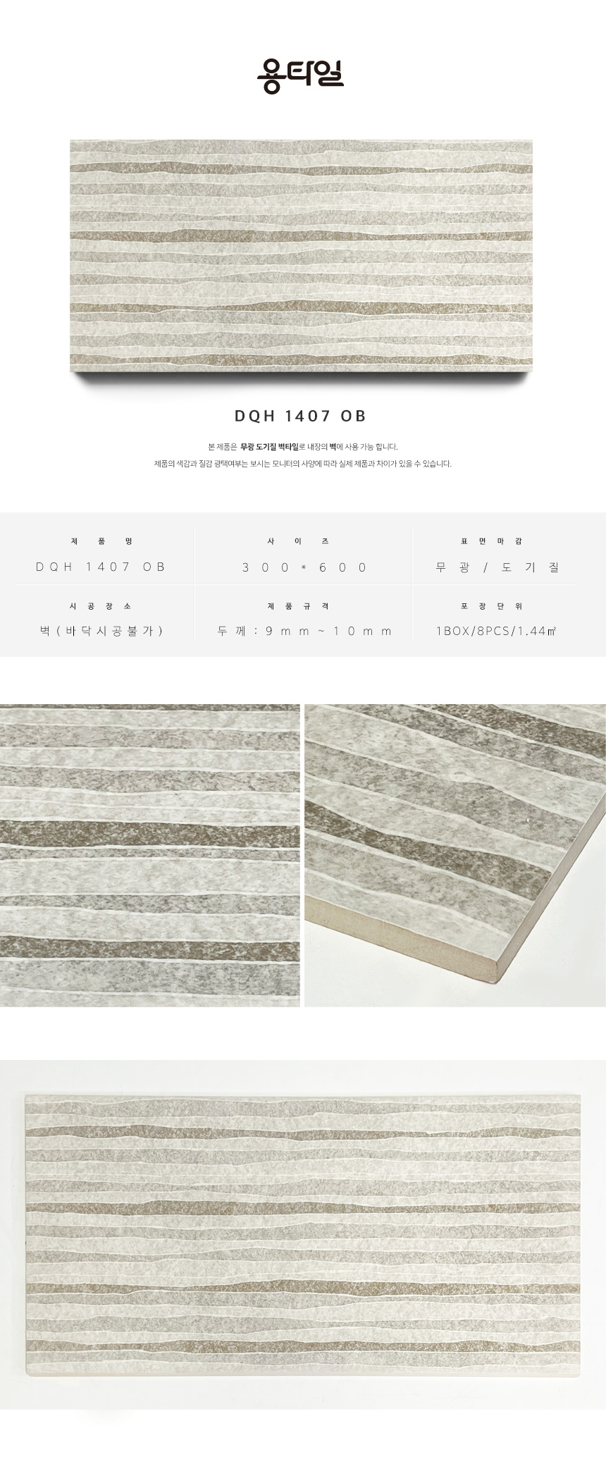 용타일 / DQH 1407 OB / 무광 / 300X600 / 벽타일 / 1Box 8pcs 1.44㎡