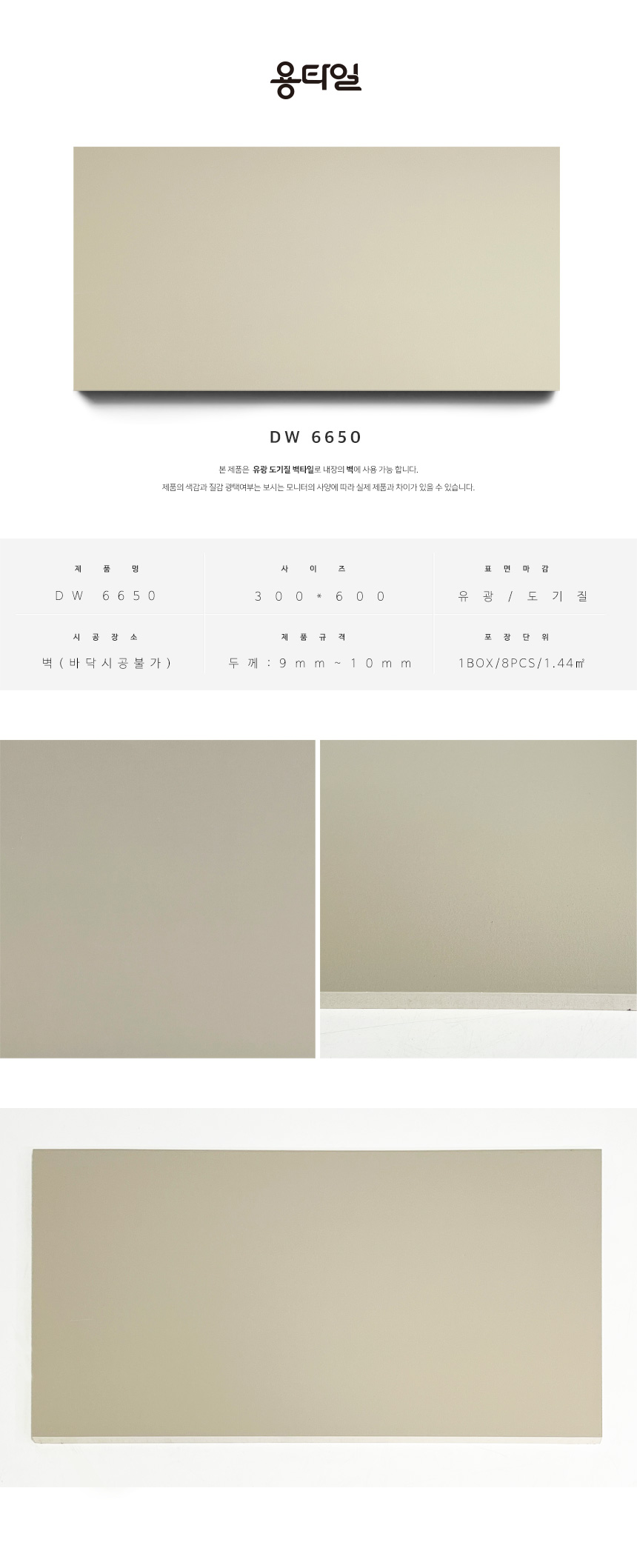 용타일 / DW 6650 / 유광 / 300X600 / 벽타일 / 1Box 8pcs 1.44㎡