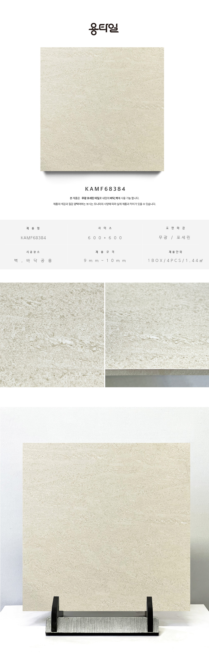 용타일 / KAMF68384 / 무광 / 600X600 / 포세린타일 / 1Box 4pcs 1.44㎡
