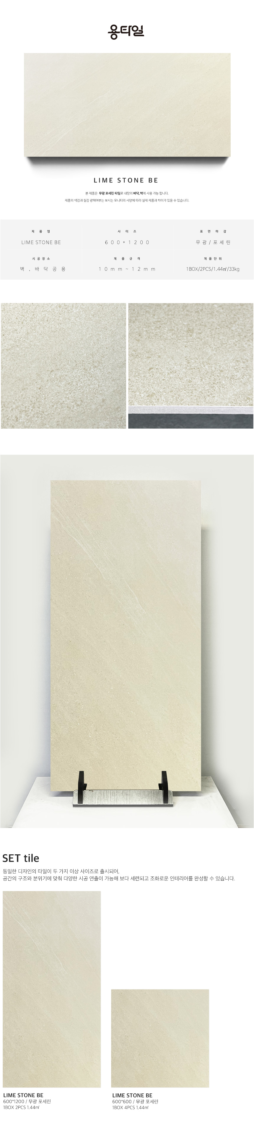 용타일 / LIME STONE BE / 무광 포세린타일 / 600X1200 / 세트타일 / 1Box 2pcs 1.44㎡