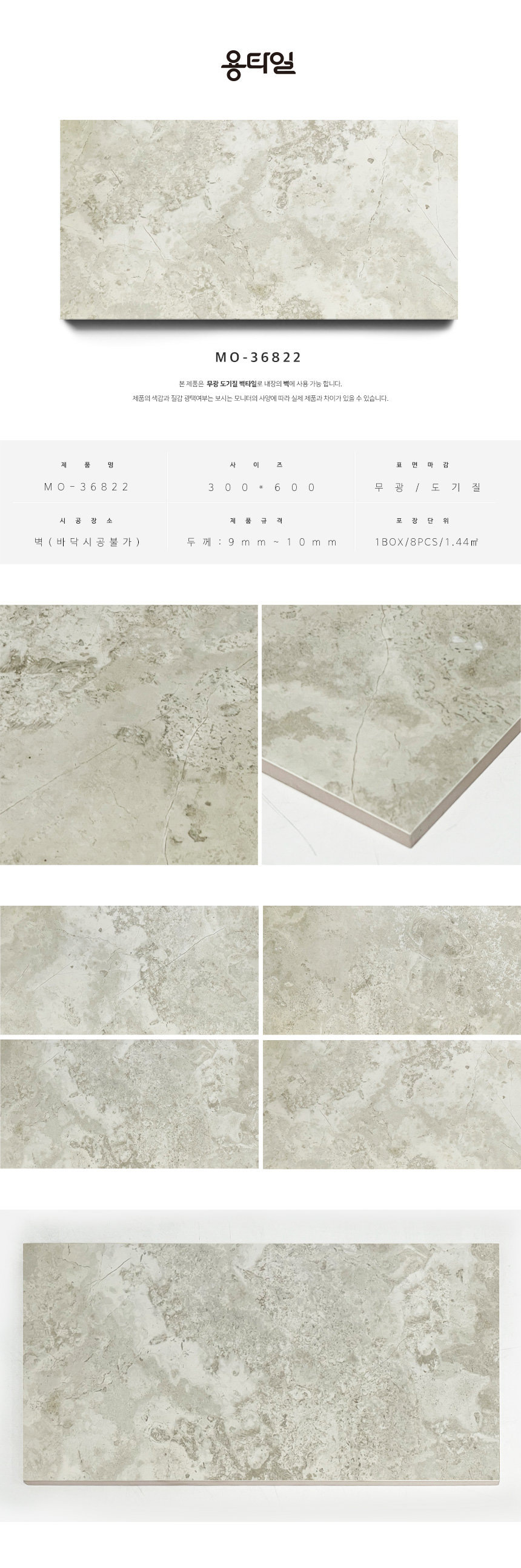 용타일 / MO-36822 / 무광 / 300X600 / 벽타일 / 1Box 8pcs 1.44㎡