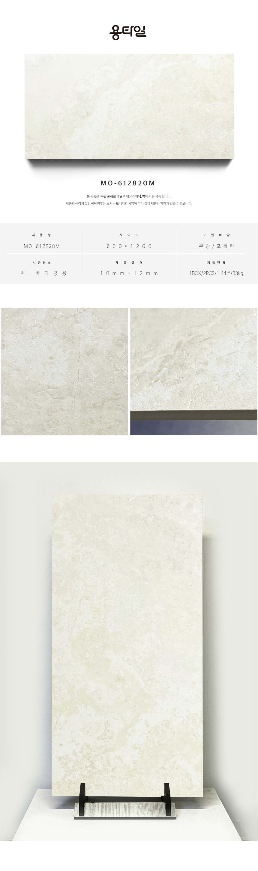 용타일 / MO-612820M / 무광 포세린타일 / 600X1200 / 세트타일 / 1Box 2pcs 1.44㎡