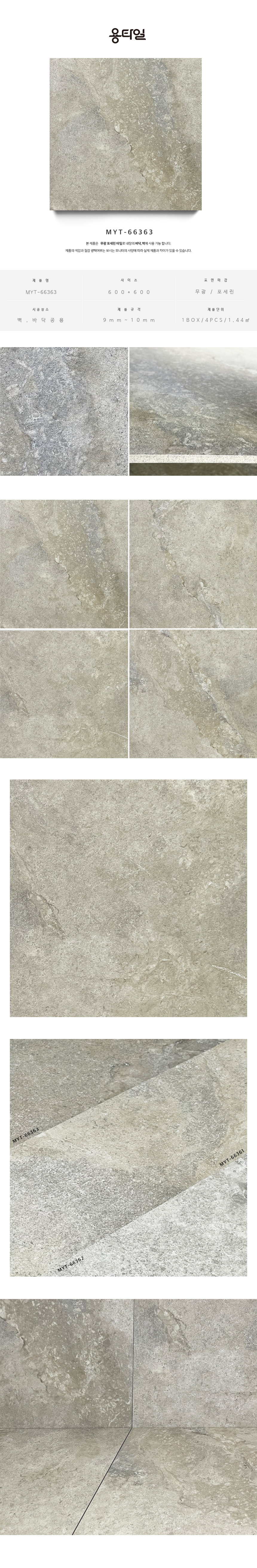용타일 / MYT-66363 / 무광 / 600X600 / 포세린타일 / 1Box 4pcs 1.44㎡