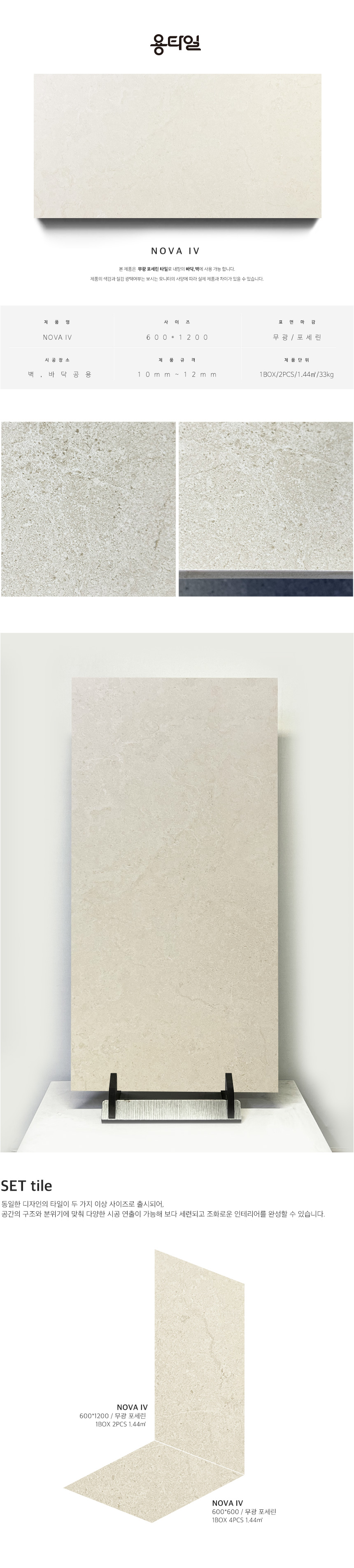 용타일 / NOVA IV / 무광 포세린타일 / 600X1200 / 세트타일 / 1Box 2pcs 1.44㎡