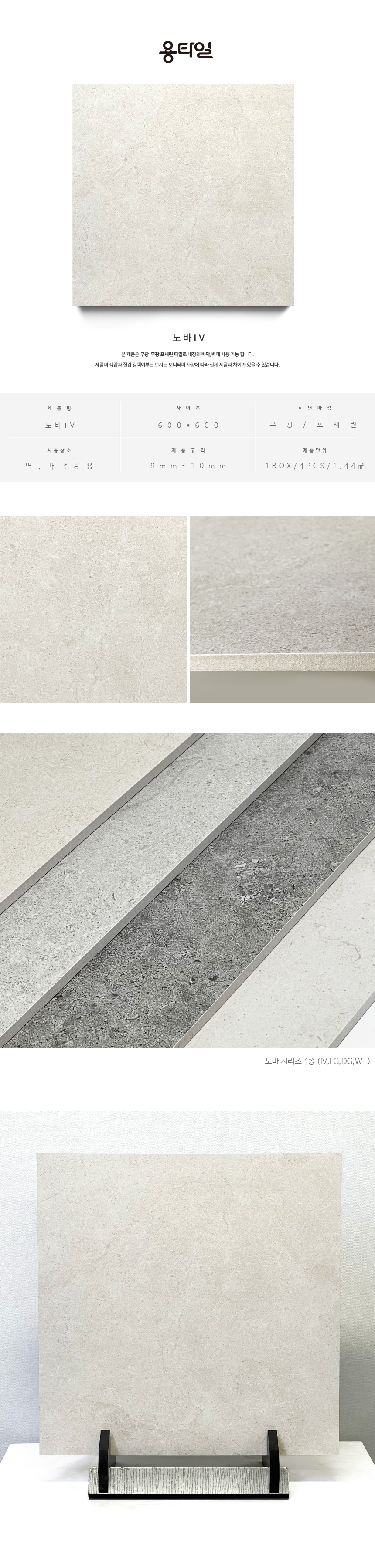 용타일 / NOVA IV / 무광 / 600X600 / 포세린타일 / 1Box 4pcs 1.44㎡