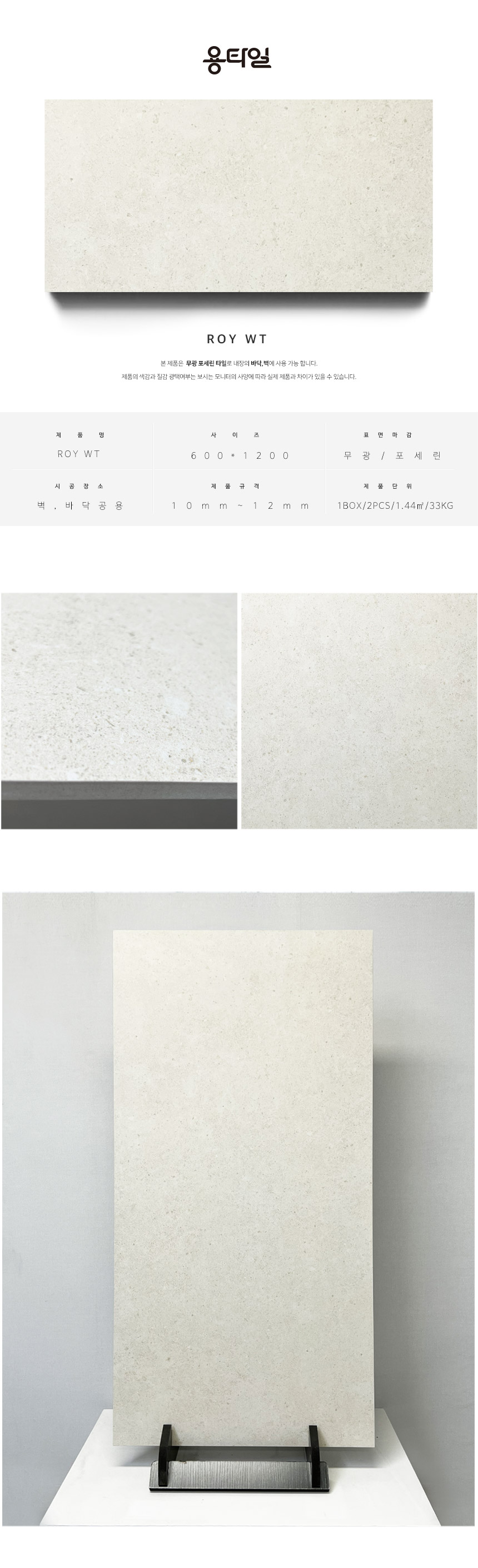 용타일 / ROY WT / 무광 / 600X1200 / 포세린타일 / 1Box 2pcs 1.44㎡