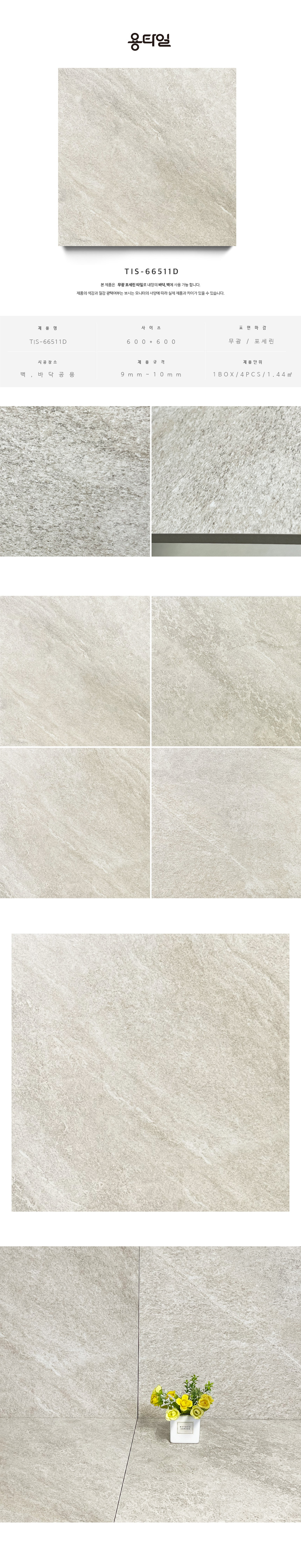 용타일 / TIS-66511D / 무광 포세린타일 / 600X600 / 세트타일 / 1Box 4pcs 1.44㎡