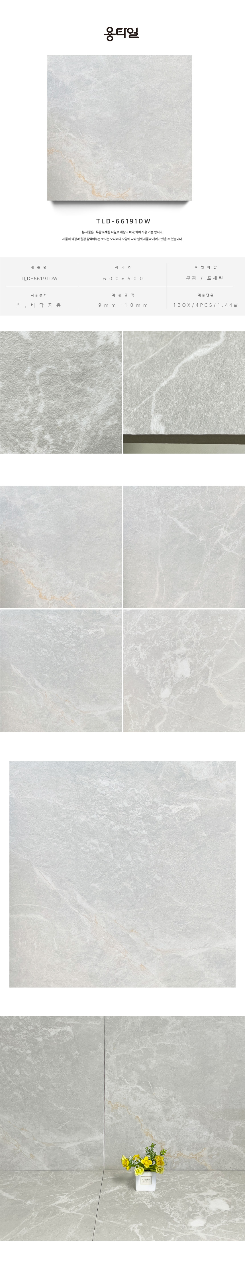 용타일 / TLD-66191DW / 무광 포세린타일 / 600X600 / 세트타일 / 1Box 4pcs 1.44㎡