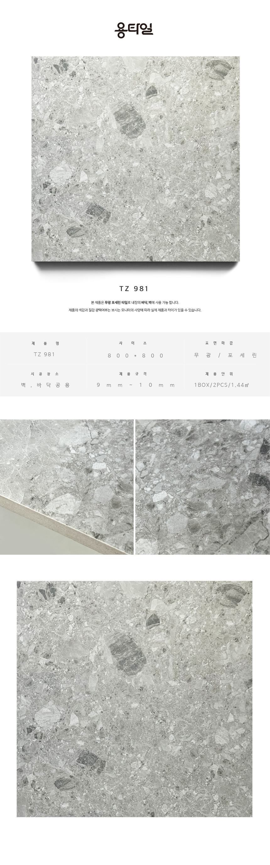 용타일 / TZ 981 / 무광 / 800X800 / 포세린타일 / 1Box 2pcs 1.28㎡