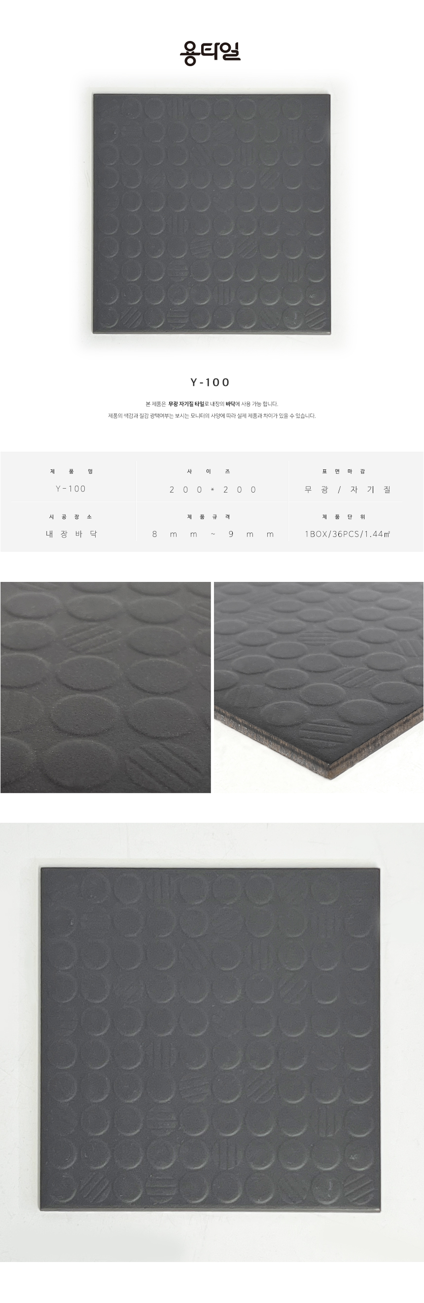 용타일 / Y-100 / 200X200 / 1Box 36pcs 1.44㎡ / 바닥타일, 자기질타일