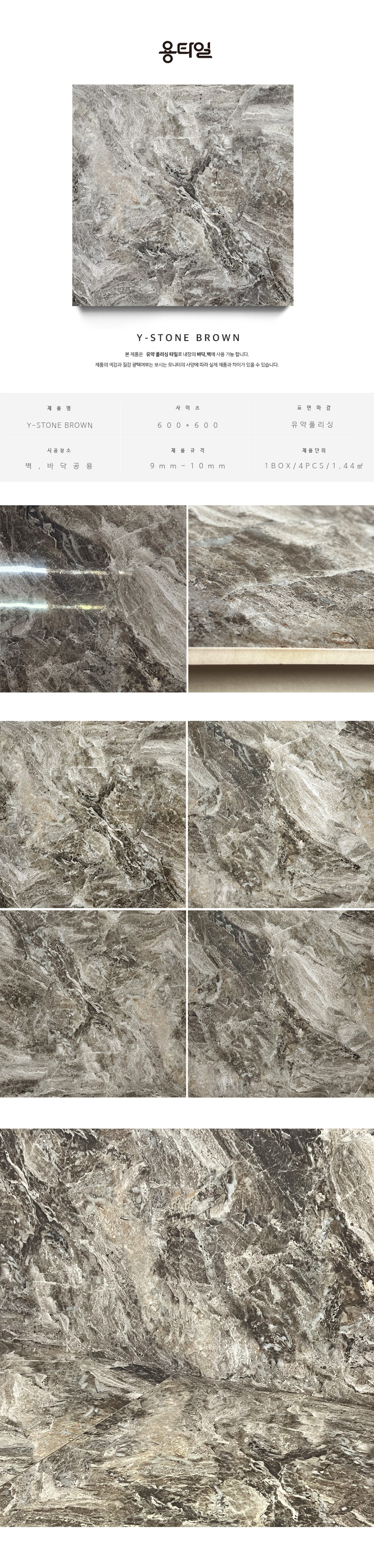 용타일 / Y-STONE BROWN / 유약폴리싱 / 600X600 / 포세린타일 / 1Box 4pcs 1.44㎡