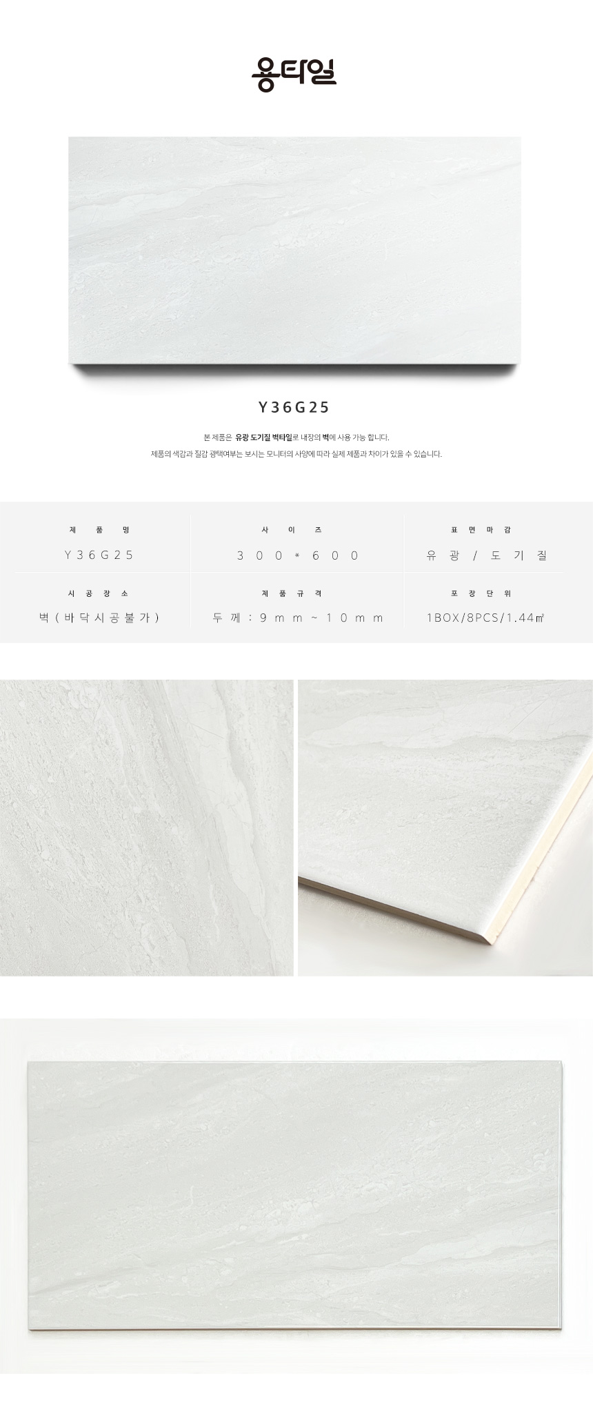 용타일 / Y36G25 / 유광 / 300X600 / 벽타일 / 1Box 8pcs 1.44㎡