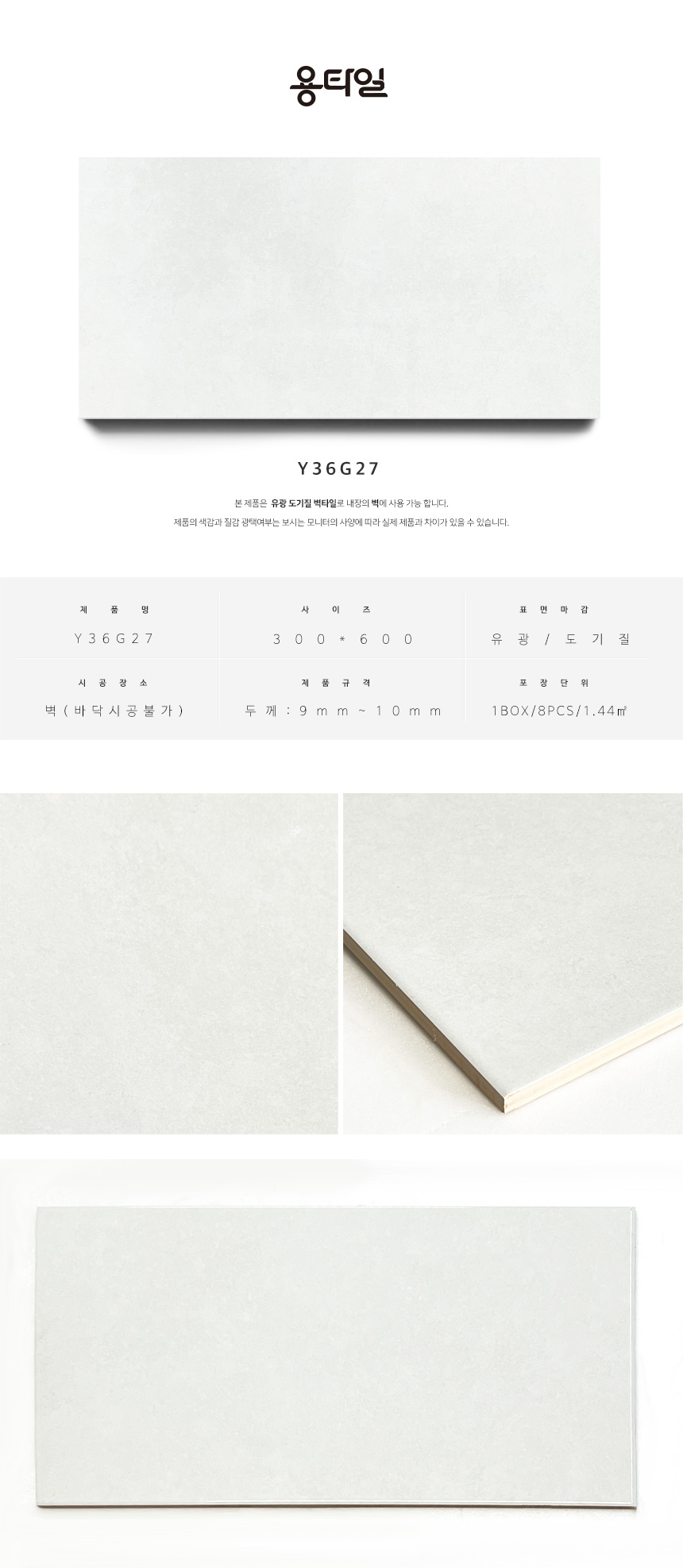 용타일 / Y36G27 / 유광 / 300X600 / 벽타일 / 1Box 8pcs 1.44㎡