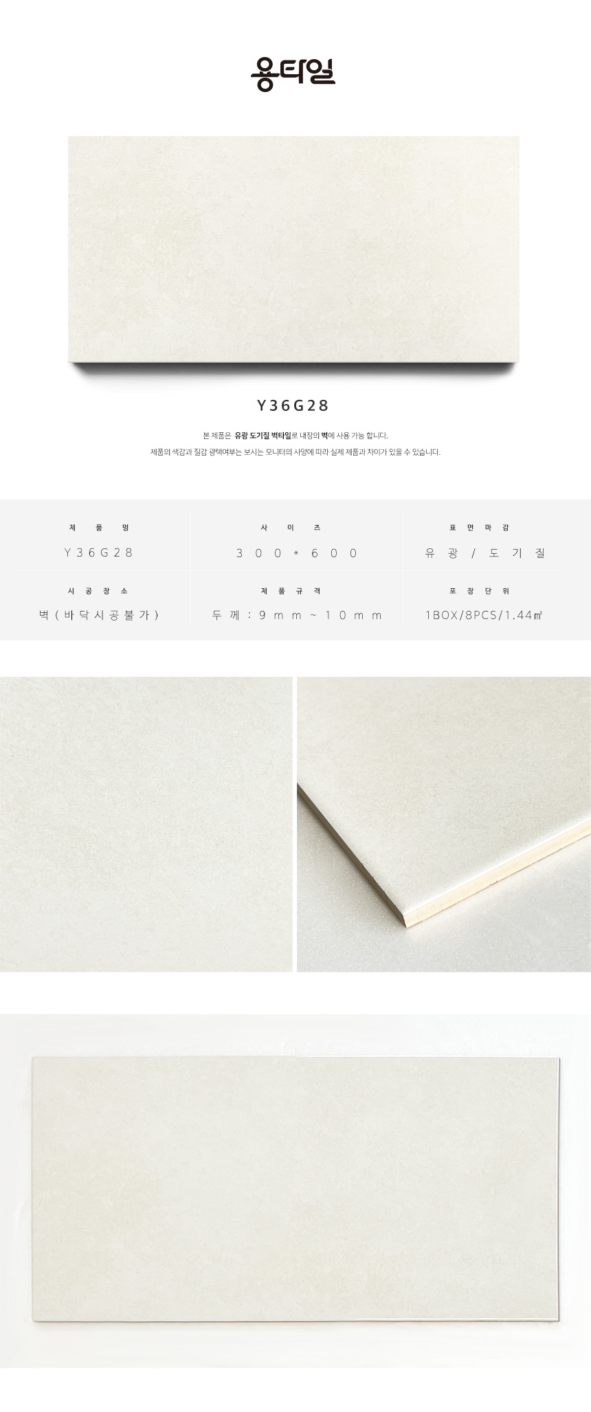 용타일 / Y36G28 / 유광 / 300X600 / 벽타일 / 1Box 8pcs 1.44㎡