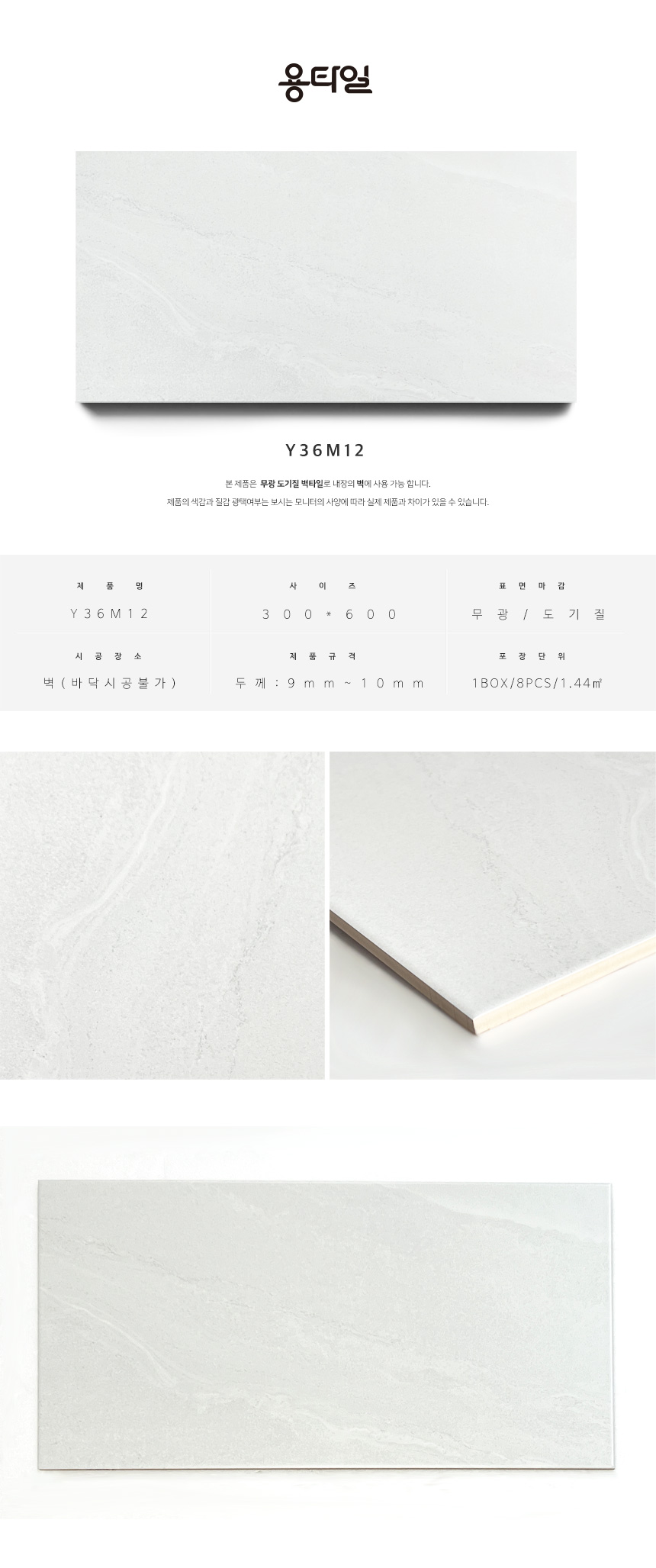용타일 / Y36M12 / 무광 / 300X600 / 벽타일 / 1Box 8pcs 1.44㎡