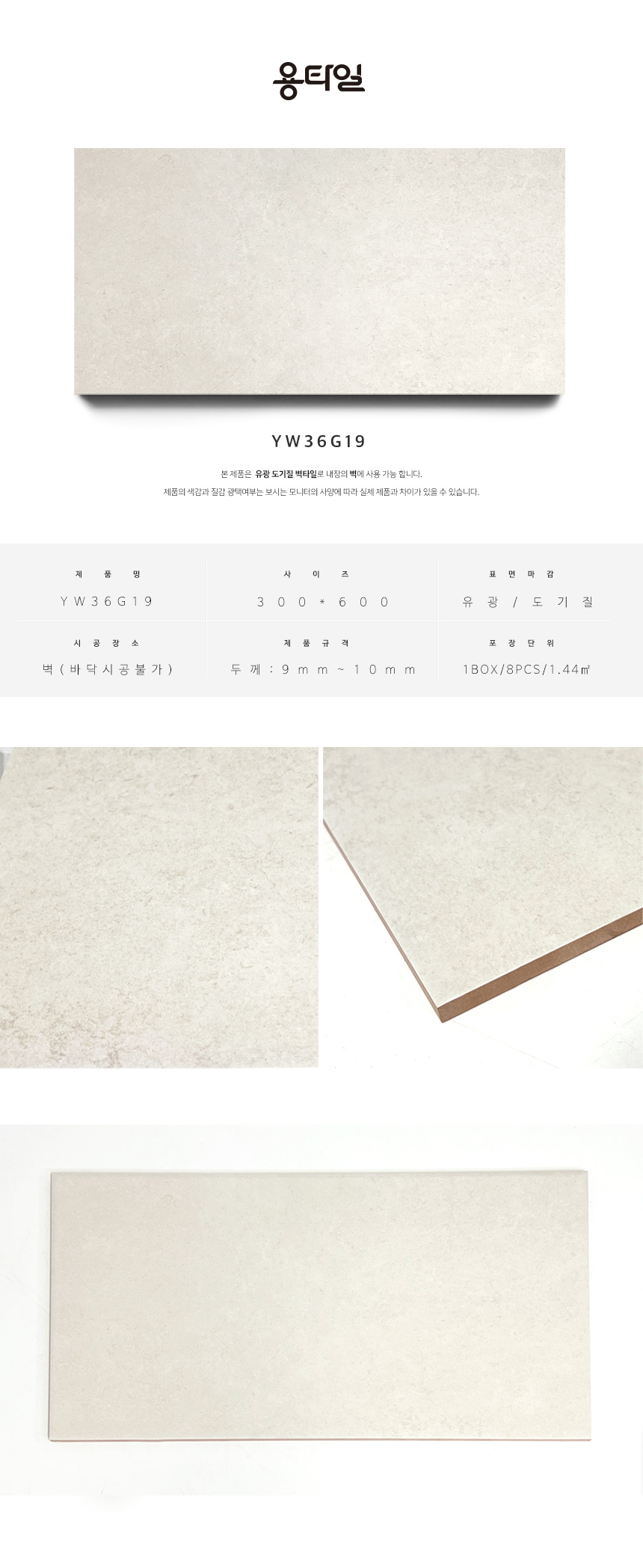 용타일 / YW36G19 / 유광 / 300X600 / 벽타일 / 1Box 8pcs 1.44㎡