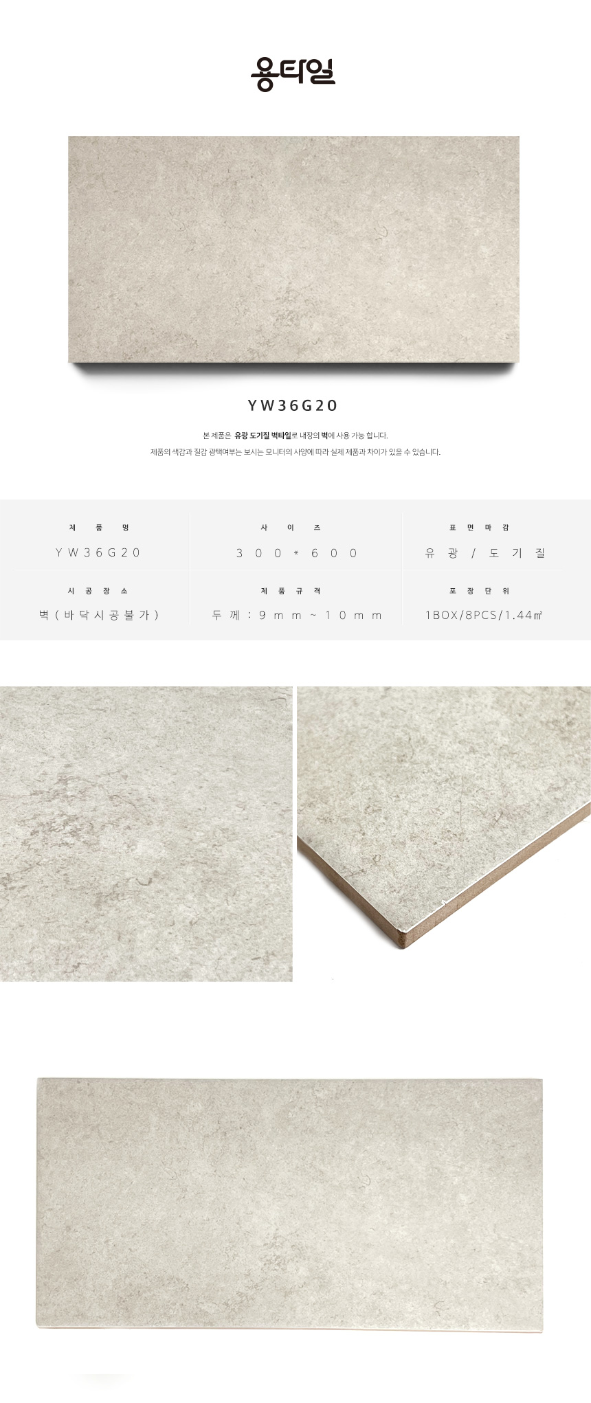 용타일 / YW36G20 / 유광 / 300X600 / 벽타일 / 1Box 8pcs 1.44㎡
