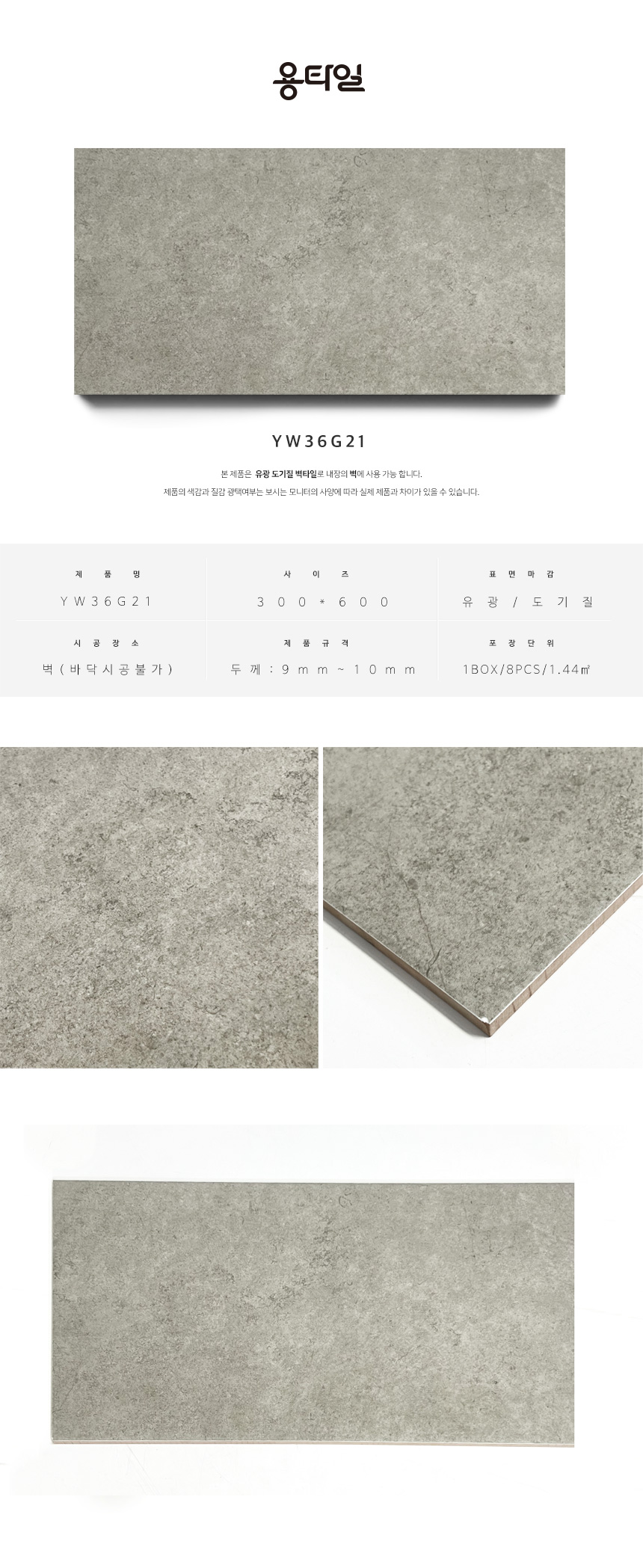 용타일 / YW36G21 / 유광 / 300X600 / 벽타일 / 1Box 8pcs 1.44㎡