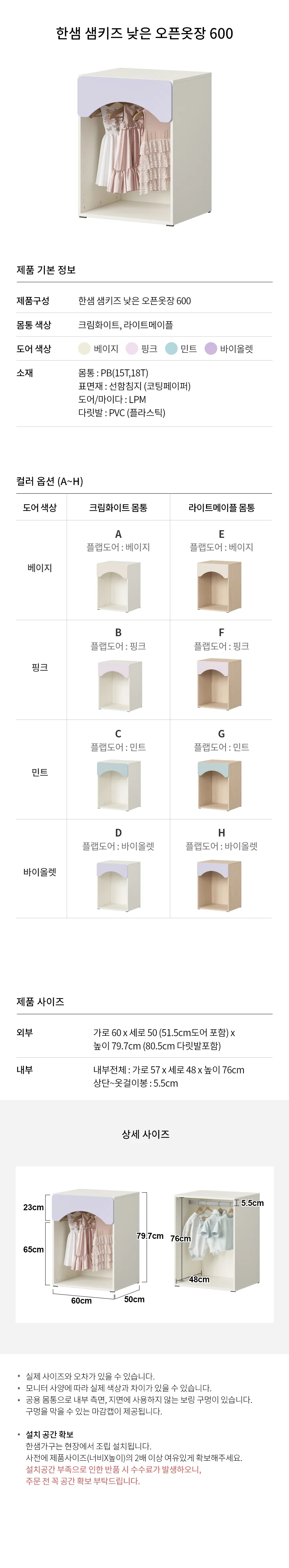 샘키즈 낮은 오픈옷장 600 | 한샘몰