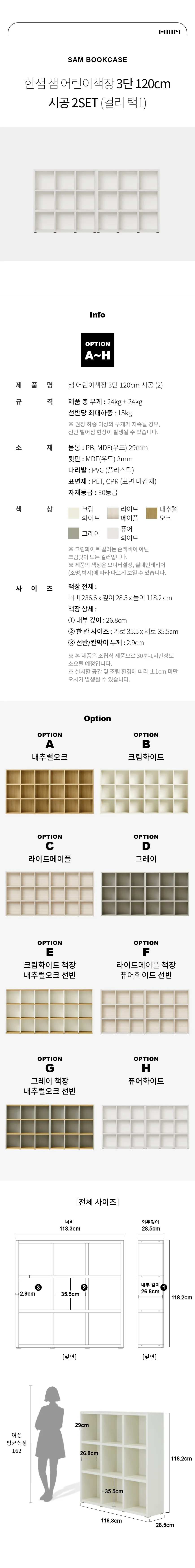 샘 어린이책장 3단 120cm X 2set 시공(컬러 택1) | 한샘몰